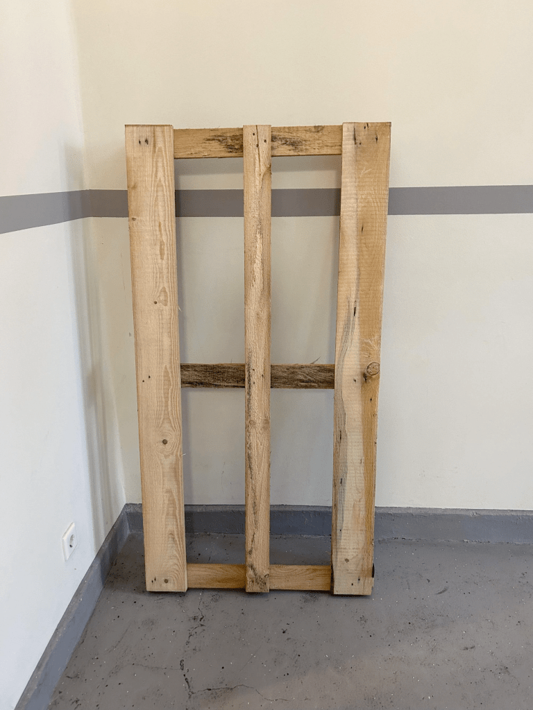 Nur zur Veranschaulichung: Das Ganze war auf diese Palette geschnallt und der Lieferant hat es mit einem Hubwagen transportiert.